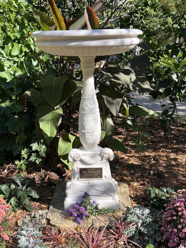 | Our beautiful mid-ninetheenth century marble urn has undergone cleaning and restoration. Jacob Arndt, architectural stone mason with carved enrichments in two U.S. State Capital buildings and London's British Museum, as well as local architectural terra cotta work in the Memorial Union and University Club on campus, State Office buildings, Taliesin, will be performed the restoration on the Urn. The restored urn was dedicated at a memorial event on September 28th, 2025 to Joe Bonardi who dedicated his skills, hard work, and vision when he undertook the revitalization of Period Garden.